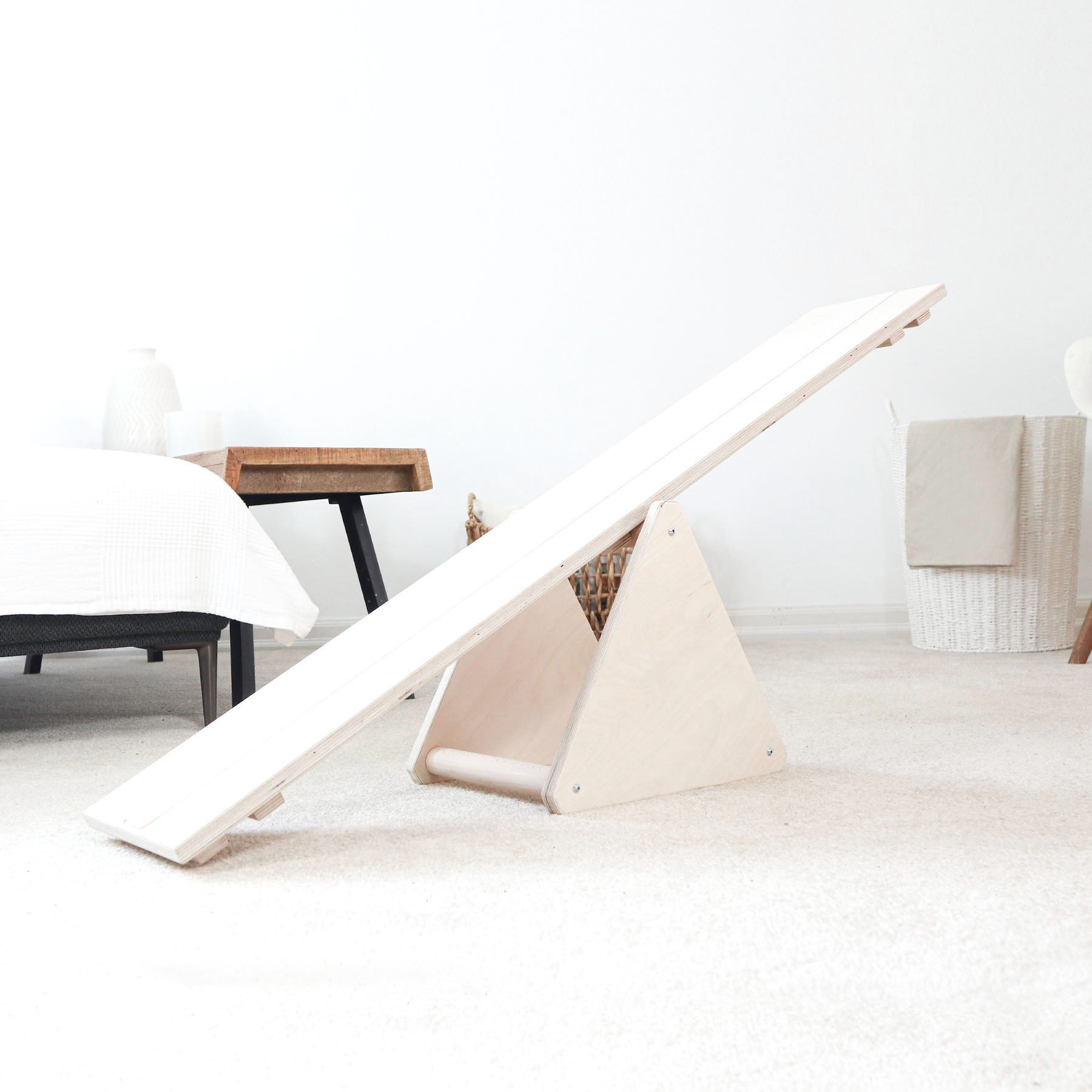 With solid wood attachment pieces conveniently in the middle and at both ends of this expertly crafted wood toy, the Teeter Totter pairs perfectly all of The Wooden Studio climbers and has established itself as a must-have piece of the collection.